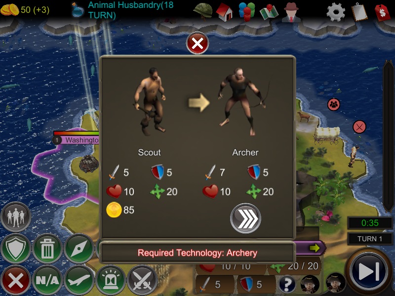 - Land units can move on water tiles with Optic Technology (only on a coast). With Astronomy, can move everywhere on ocean. 50% penality on attack and defense